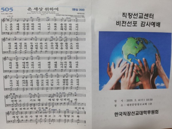 직장선교센타 비전선포감사예배 페이지 정보 작성자 최고관리자 작성일20-03-21 09:28 댓글0건 관련링크 본문 2020. 3. 4(수) 10:30 직장선교센타 비전 선포 감사 예배를 드렸습니다. 이전글 목록